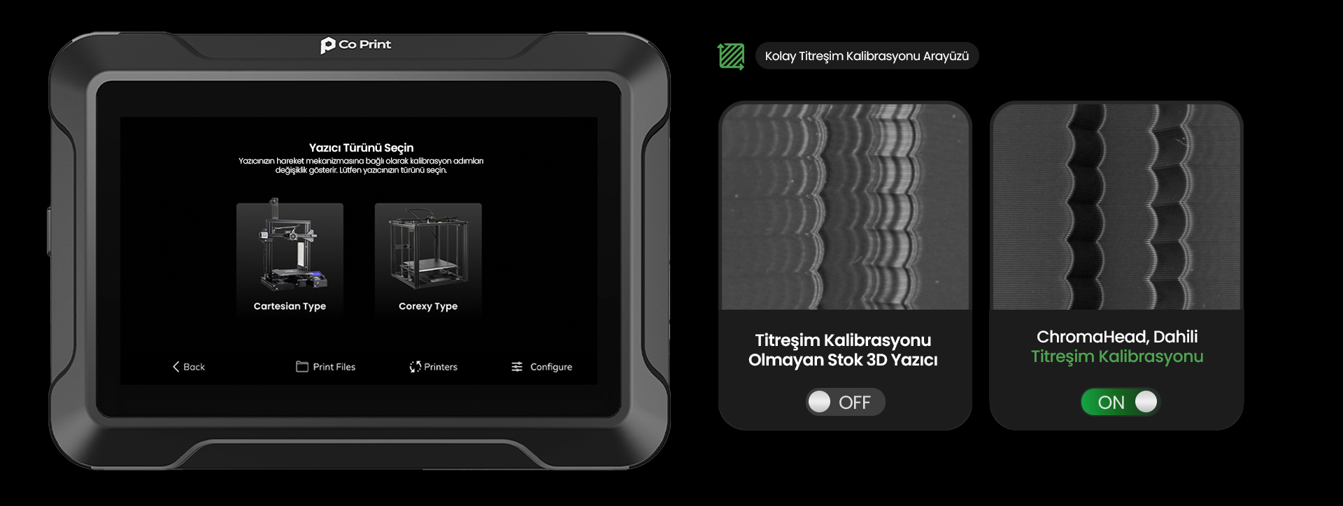 ChromaSet, 3D yazıcınıza bağlanarak onu yüksek hızlı ve çok renkli baskı yapabilen bir makineye dönüştürür. Üçüncü parti bir geliştirme kiti olan ChromaSet, içerisinde Dahili bir mini bilgisayar barındıran ChromaPad kontrol paneli sayesinde yazıcınız Klipper desteği kazandırır.