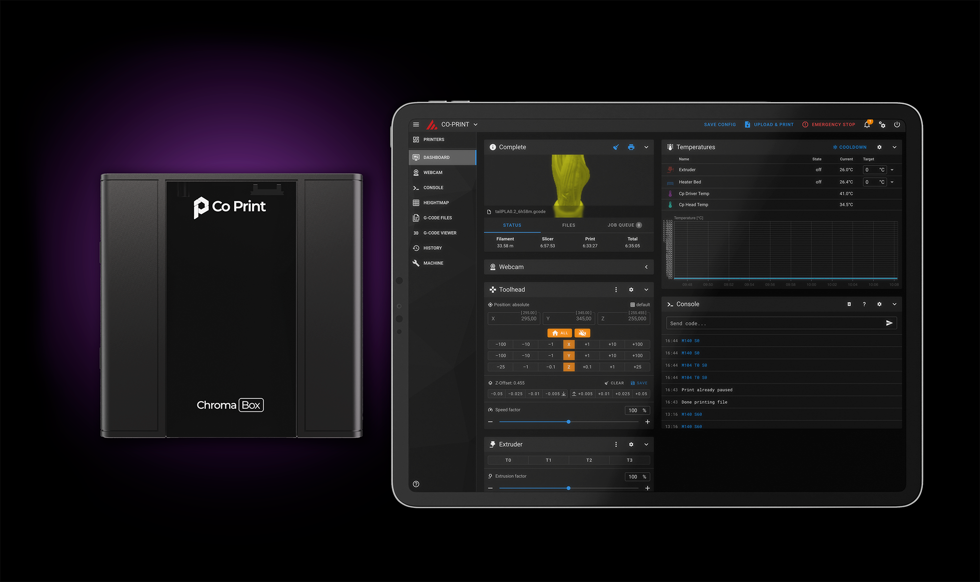 Can be remotely controlled via Mainsail & Fluidd