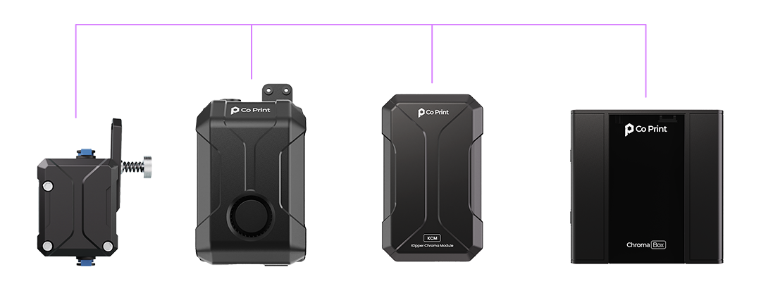 Thanks to ChromaBox, you can now use the KCM Set on Marlin-based 3D printers without needing a ChromaPad. Simply connect the KCM to the ChromaBox via USB, then link the ChromaBox to your Marlin printer. This gives you full Klipper control while also enabling multi-color printing on your machine.